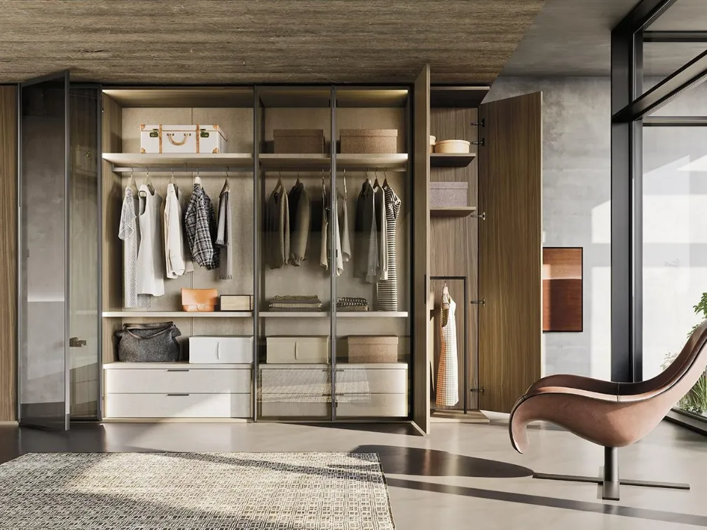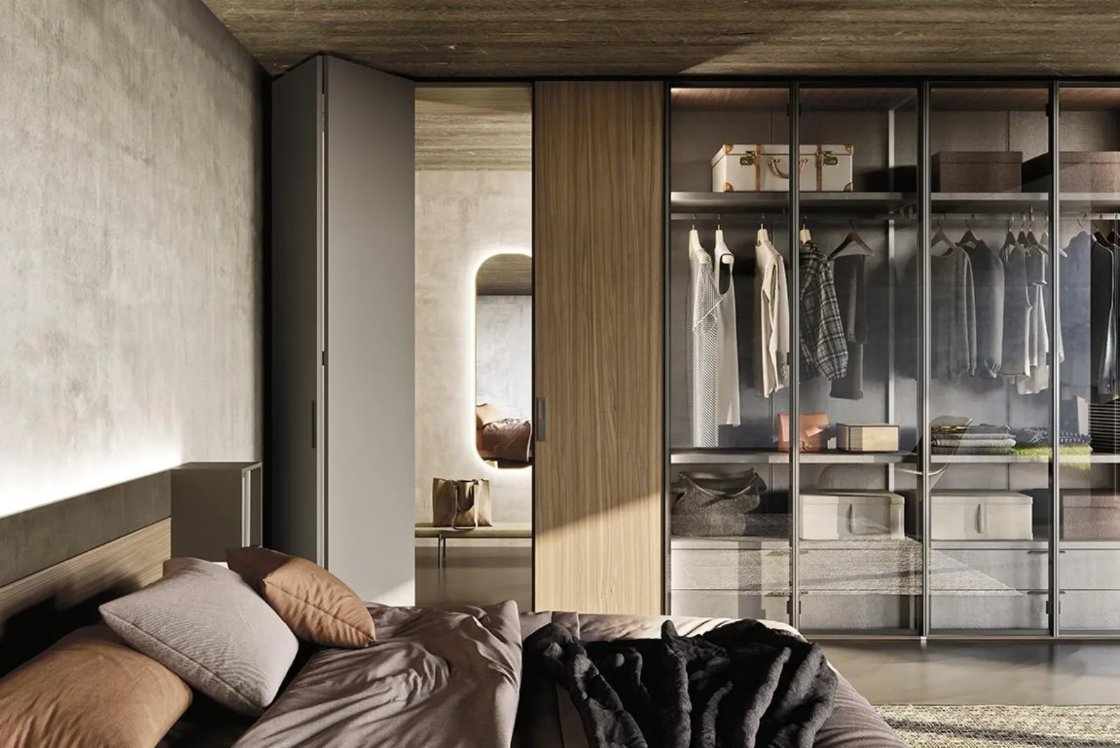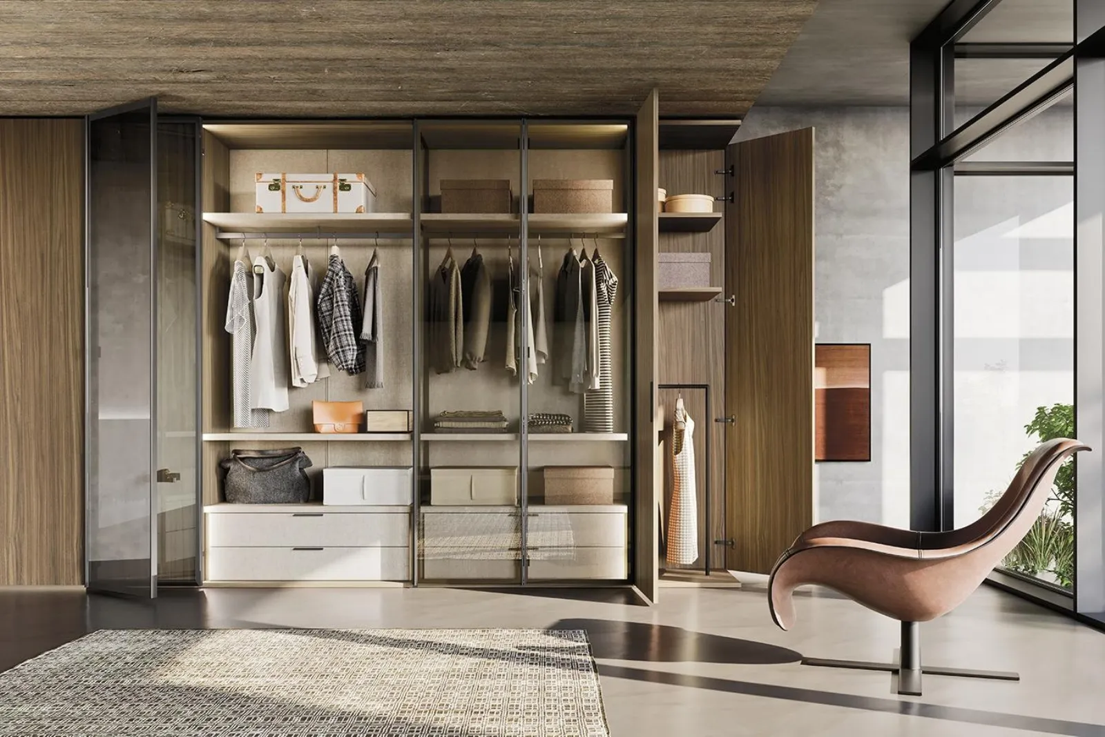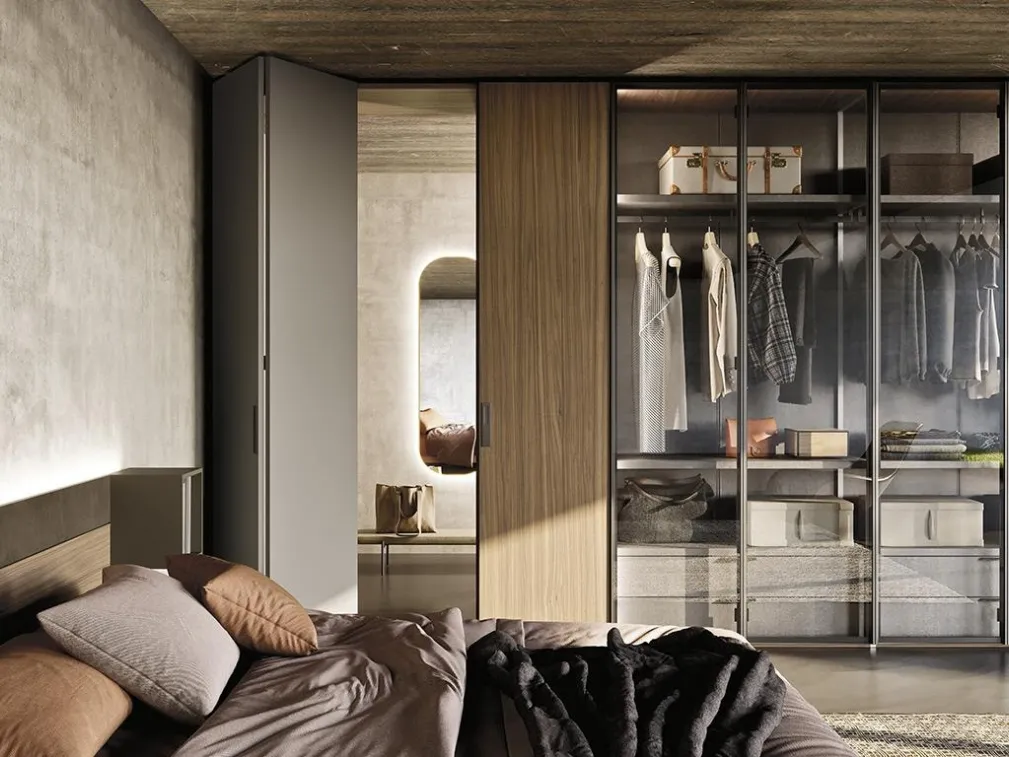 Ti presentiamo l'armadio Comp N06A in vetro di Mobilgam! Una ricca gamma di armadi a muro con ante a soffietto.