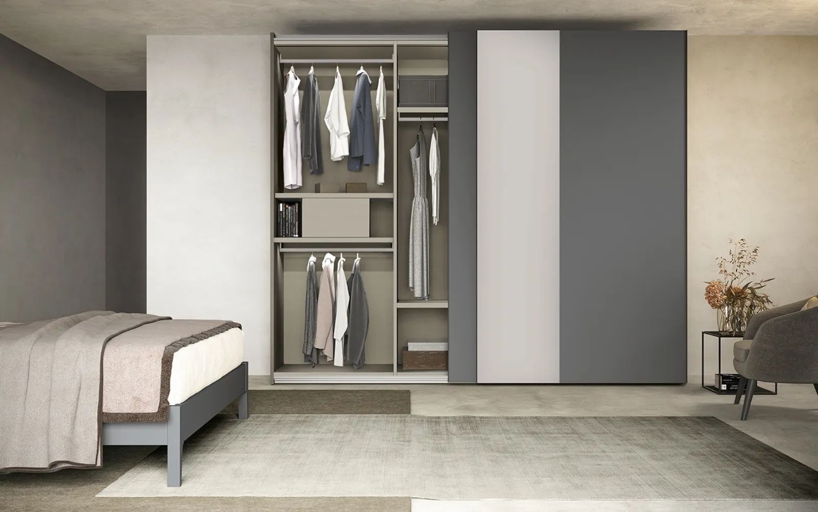 Se vuoi una camera da letto arredata con gusto, scegli l'armadio Freedom N17 con ante scorrevoli di Colombini Casa!
