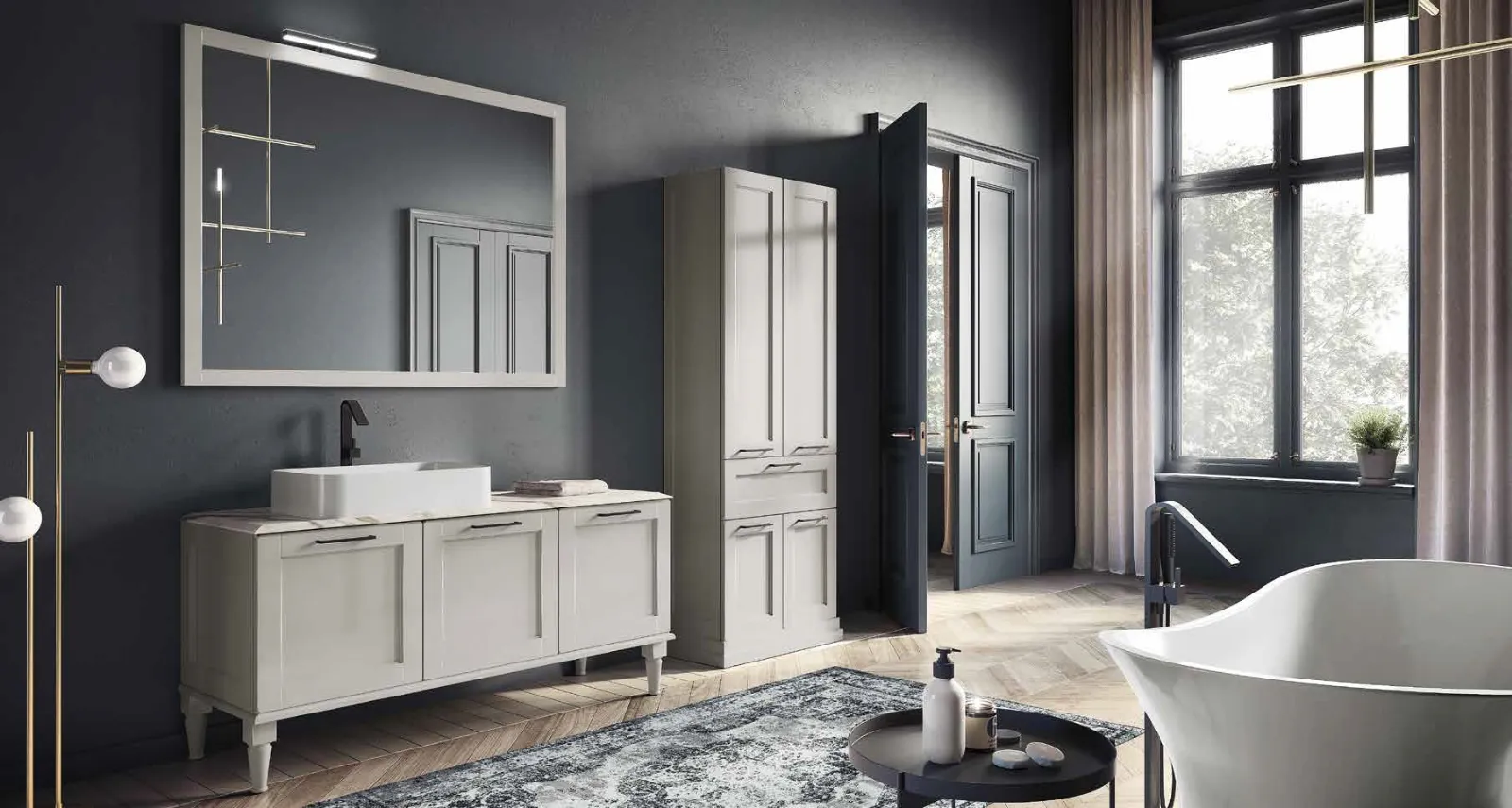 Ottieni informazioni sull'arredo bagno moderno: mobili bagno da appoggio in laccato opaco come il modello Accademia 34 di Puntotre ti aspettano.