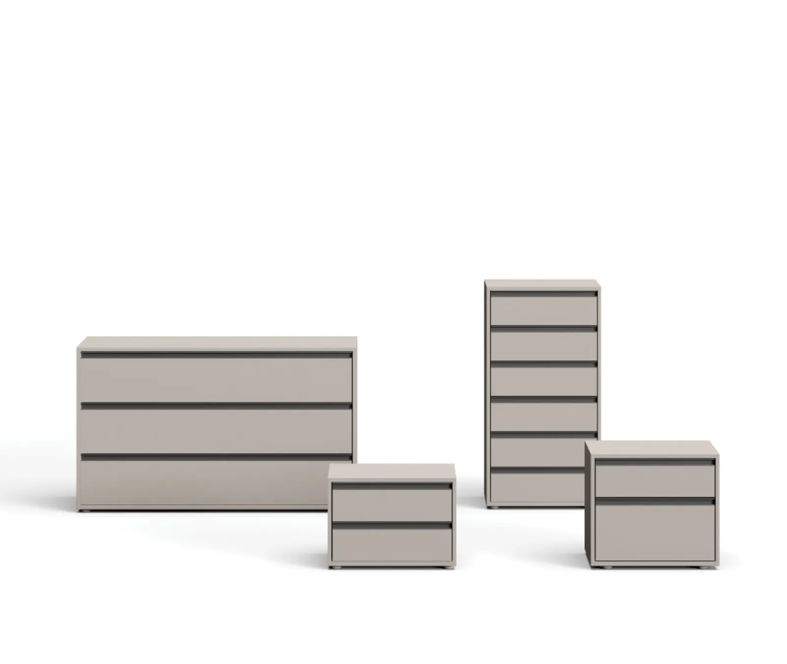 Una ricca gamma di cassettiere Orme: i comodini moderni in melaminico, come Gruppo Notte Tratto, sono tra le soluzioni più belle.