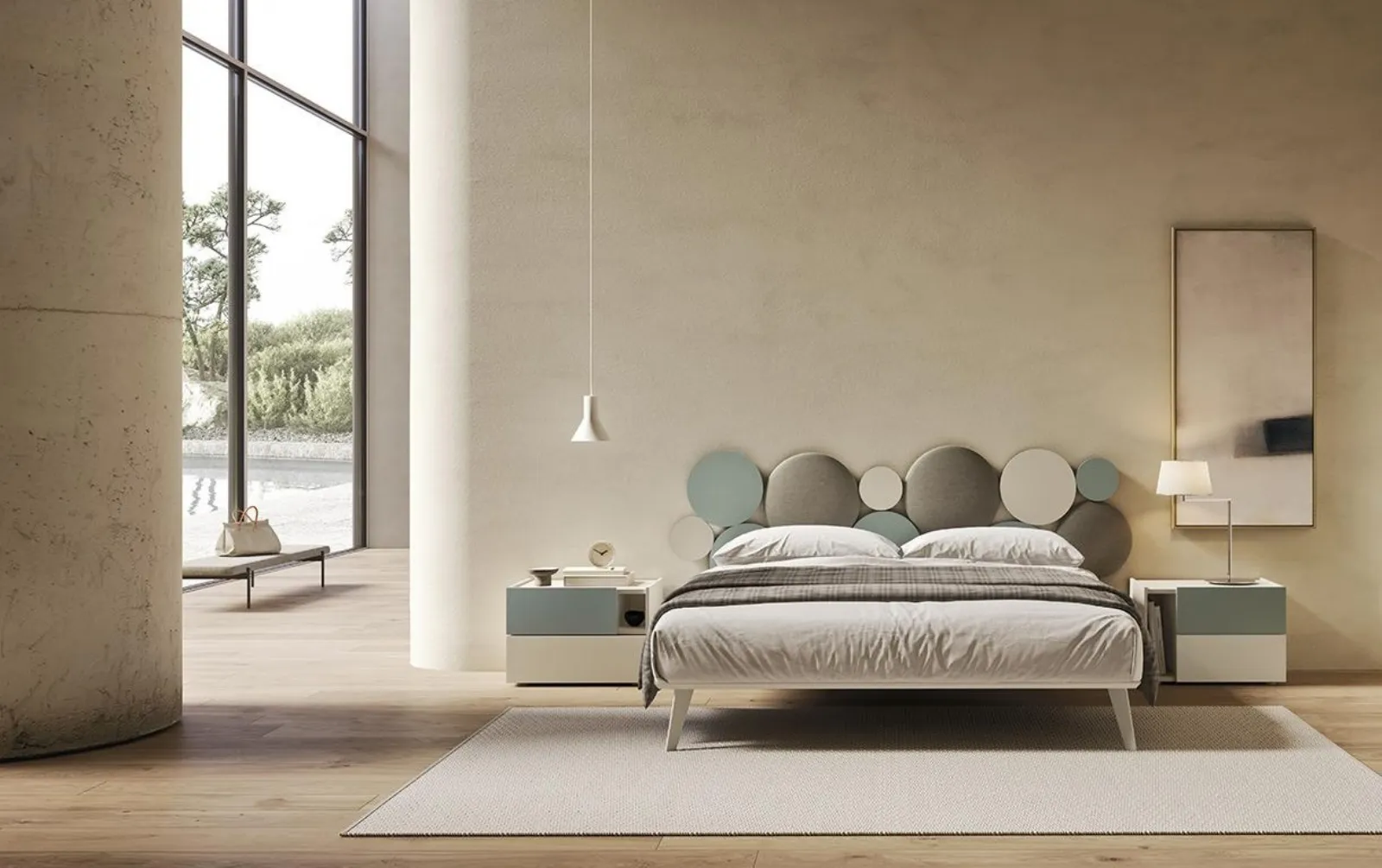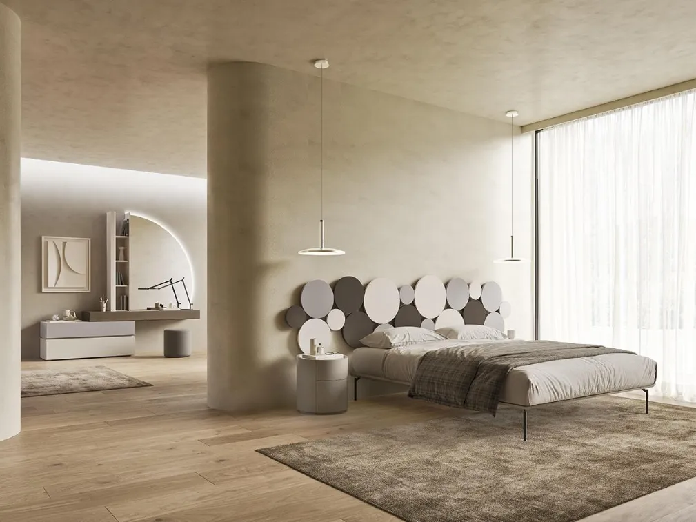 Vuoi organizzare la zona notte? Ecco qui il letto in laccato opaco Dot N17 di Mobilgam per spazi design.
