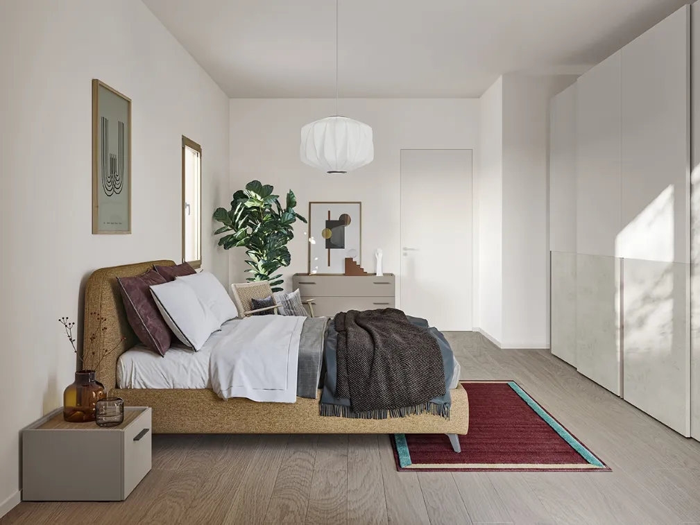 Se desideri letti matrimoniali imbottiti, ecco qui il modello Verso in tessuto per completare la zona notte.