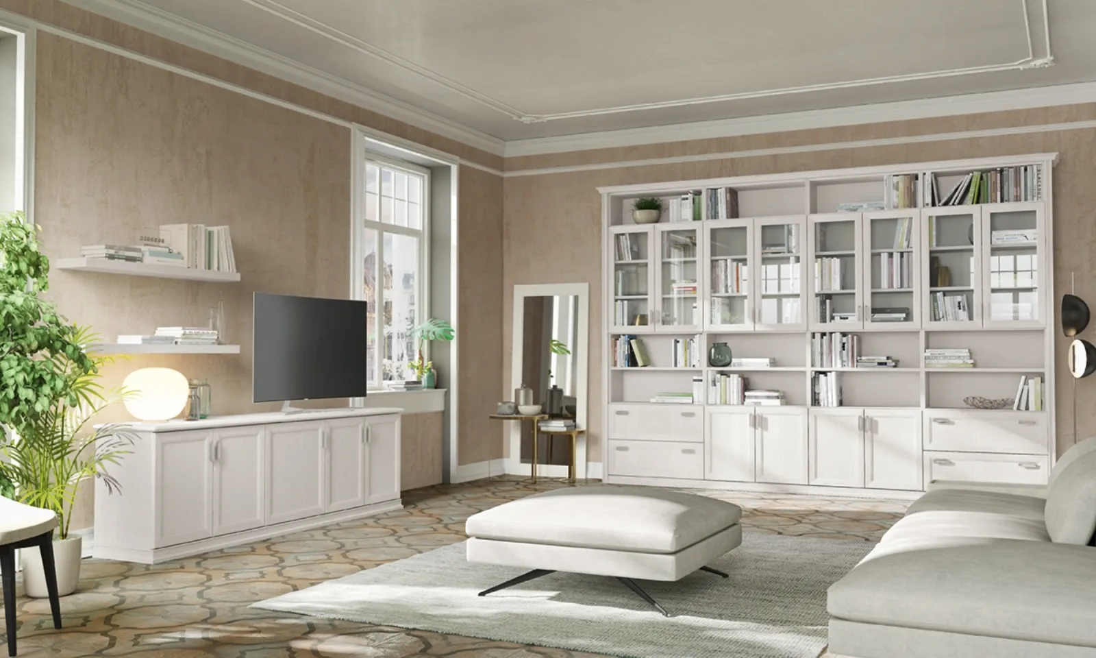 Materiali di pregio e linee decise: scopri la libreria Arcadia AS017 di Colombini Casa tra le più originali Librerie classiche a muro.