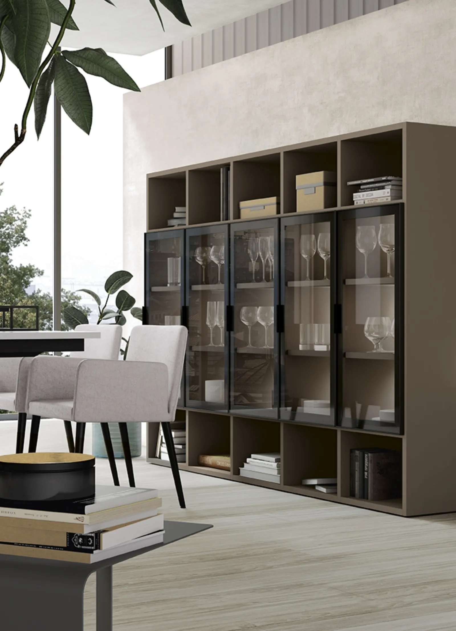 Finiture di pregio e linee decise: scopri la libreria Infinity L08 di Colombini Casa tra le più belle Librerie moderne a muro.