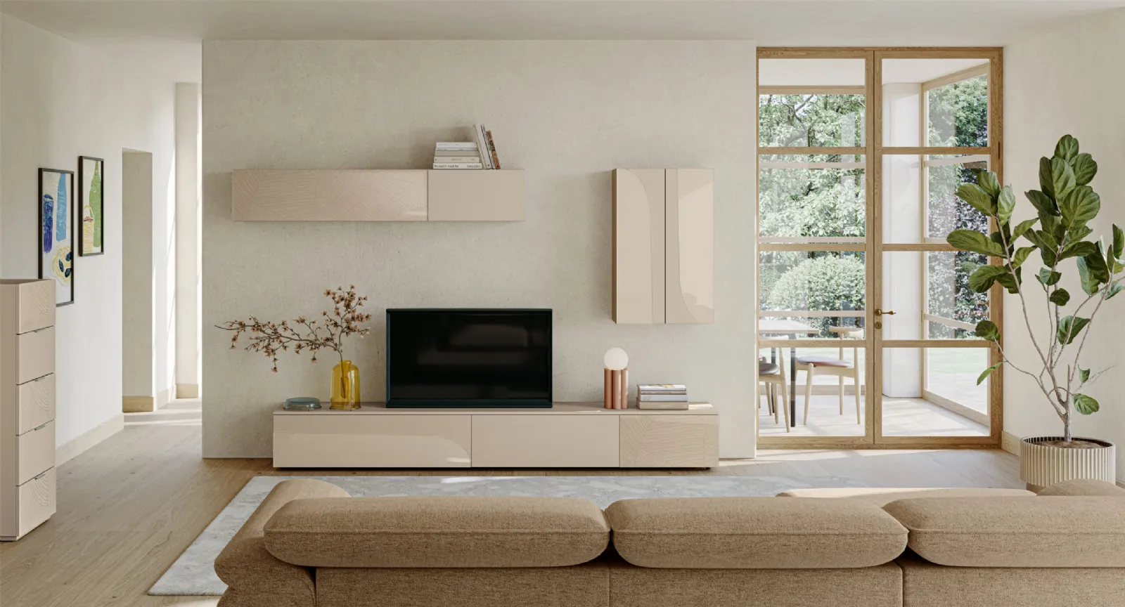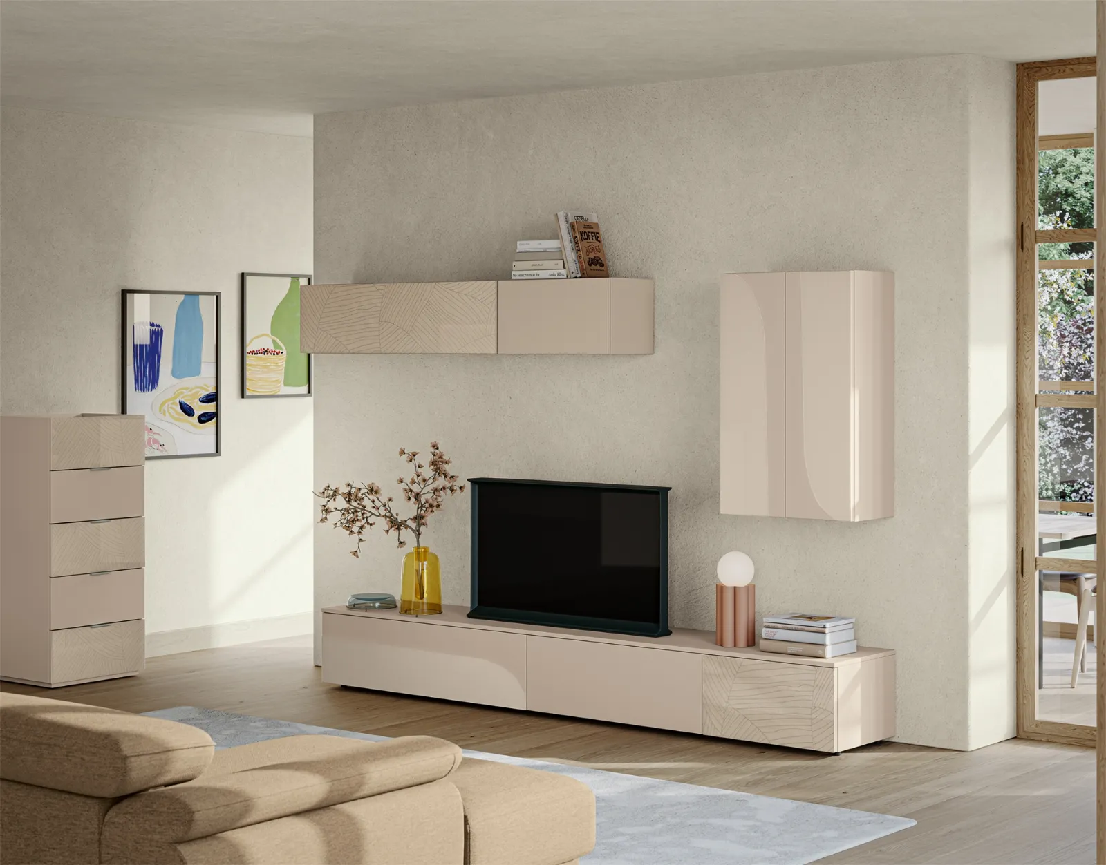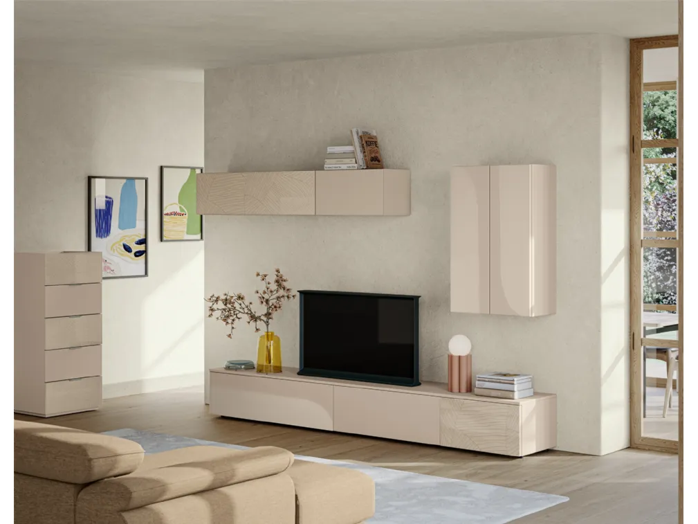 Vuoi progettare un soggiorno dinamico e operativo? Ti presentiamo la parete attrezzata Eclettica EG003 Colombini Casa dalle linee decise moderne.
