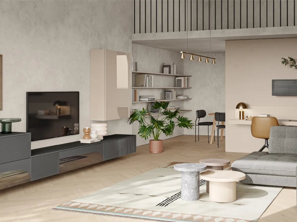 Vuoi progettare un living pratico e operativo? Ti presentiamo la parete attrezzata Eclettica EG001 Colombini Casa dalle linee decise moderne.