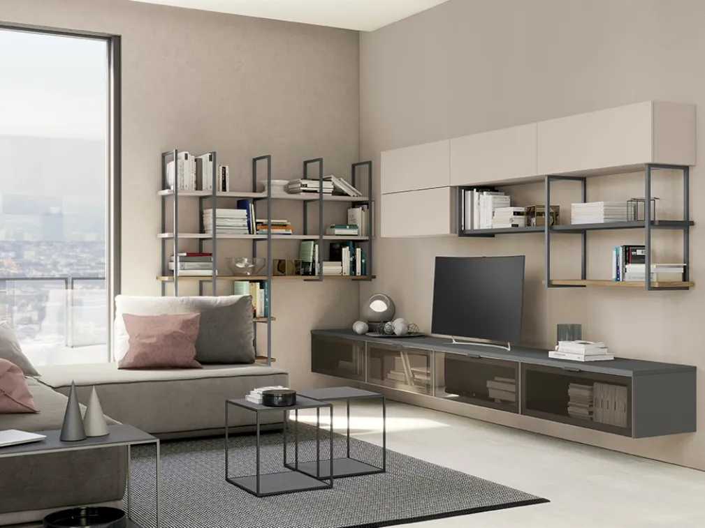 Vuoi allestire un living pratico e dinamico? Ti presentiamo la parete attrezzata Golf Contract A03 Colombini Casa dalle forme decise moderne.