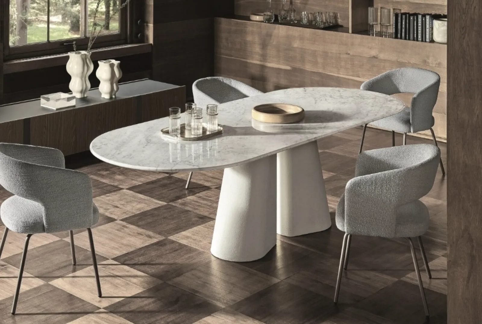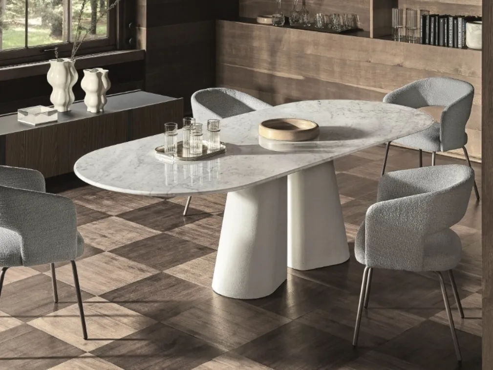 Ideali per dare vita a degli accostamenti unici con sedute e complementi design, i Tavoli fissi del brand sono soluzioni tra le più esclusive in commercio, ideali per il soggiorno e la zona cucina. Tavolo ovale Pillar di Ditre Italia: realizzato in materiali pregiati è connotato dalle forme decise del top e da un basamento elegante e raffinato. Un modello come quello nell'immagine, in abbinamento alle giuste sedute, saprà arricchire l'atmosfera delle stanze di casa dedicate in assoluto alla convivialità. Il noto e conosciuto brand Ditre Italia, specialista nella produzione di arredi in marmo, ha scelto per la sua linea una grande varietà di finiture, forme e tonalità.