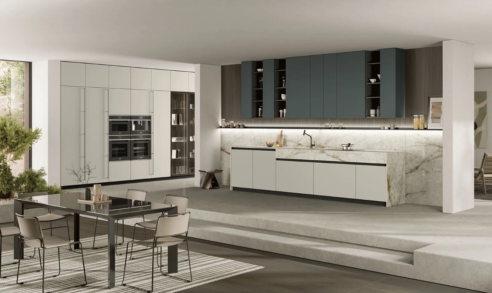 Cucine Moderne ad angolo: clicca e scopri una ricca gamma di soluzioni della firma Colombini Kitchen, tra cui il modello Lungomare 01.