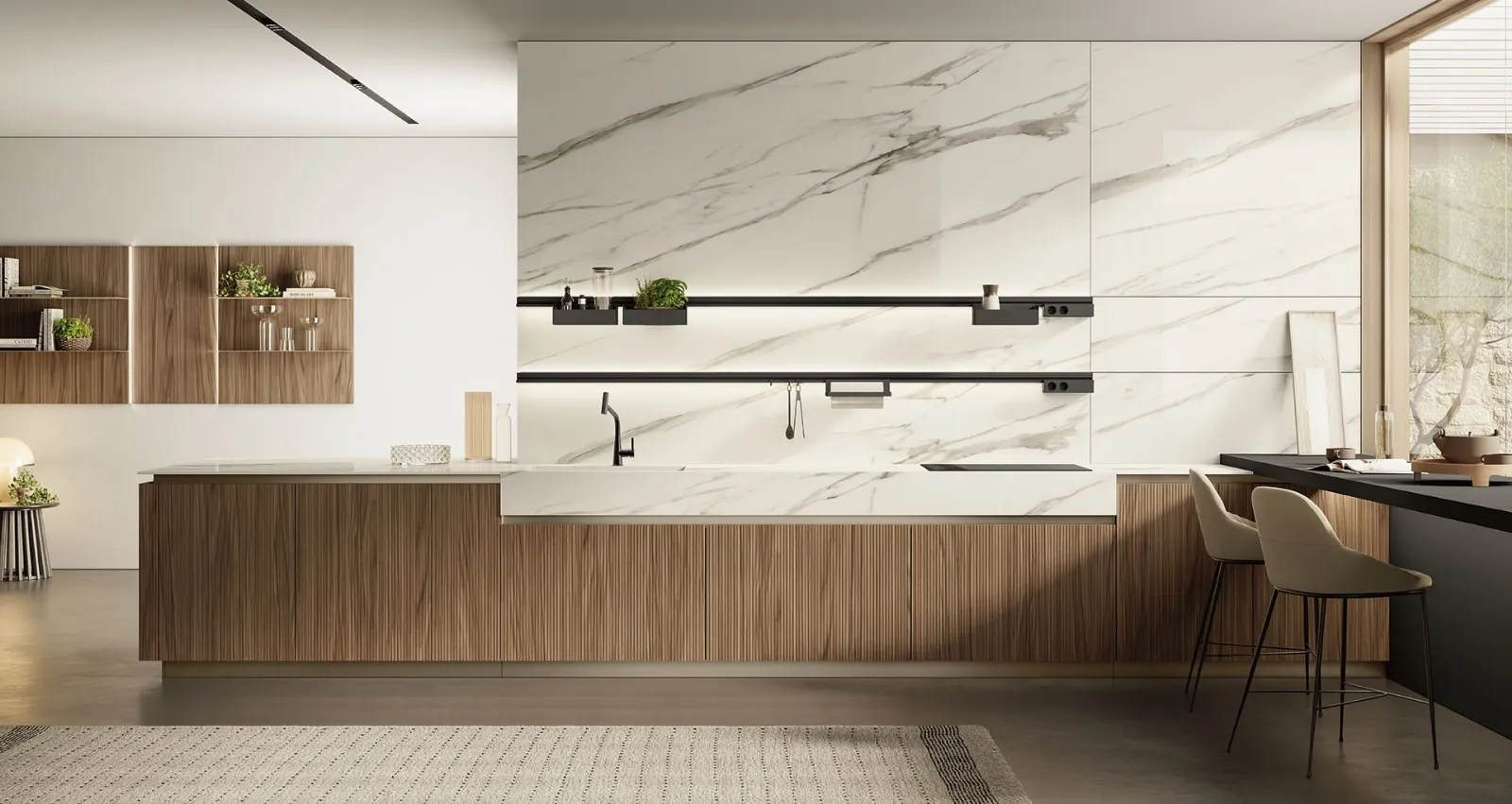 Se cerchi una soluzione dalle linee essenziali, caratterizzata da un design più sobrio, ti consigliamo di orientare l'acquisto verso le Cucine Moderne dell'azienda Colombini Casa Artec. Quando scegli una cucina moderna devi dare priorità al modo in cui vivi i tuoi spazi, per completare perfettamente la tua composizione d’arredo. A rendere la Cucina Moderna con penisola Lungomare Plus Cannettato 03 di Colombini Casa Artec una tra le più originali soluzioni dell'azienda, oltre ai suoi bellissimi dettagli, è il materiale: è realizzata in legno per garantire comfort e qualità nel tempo.