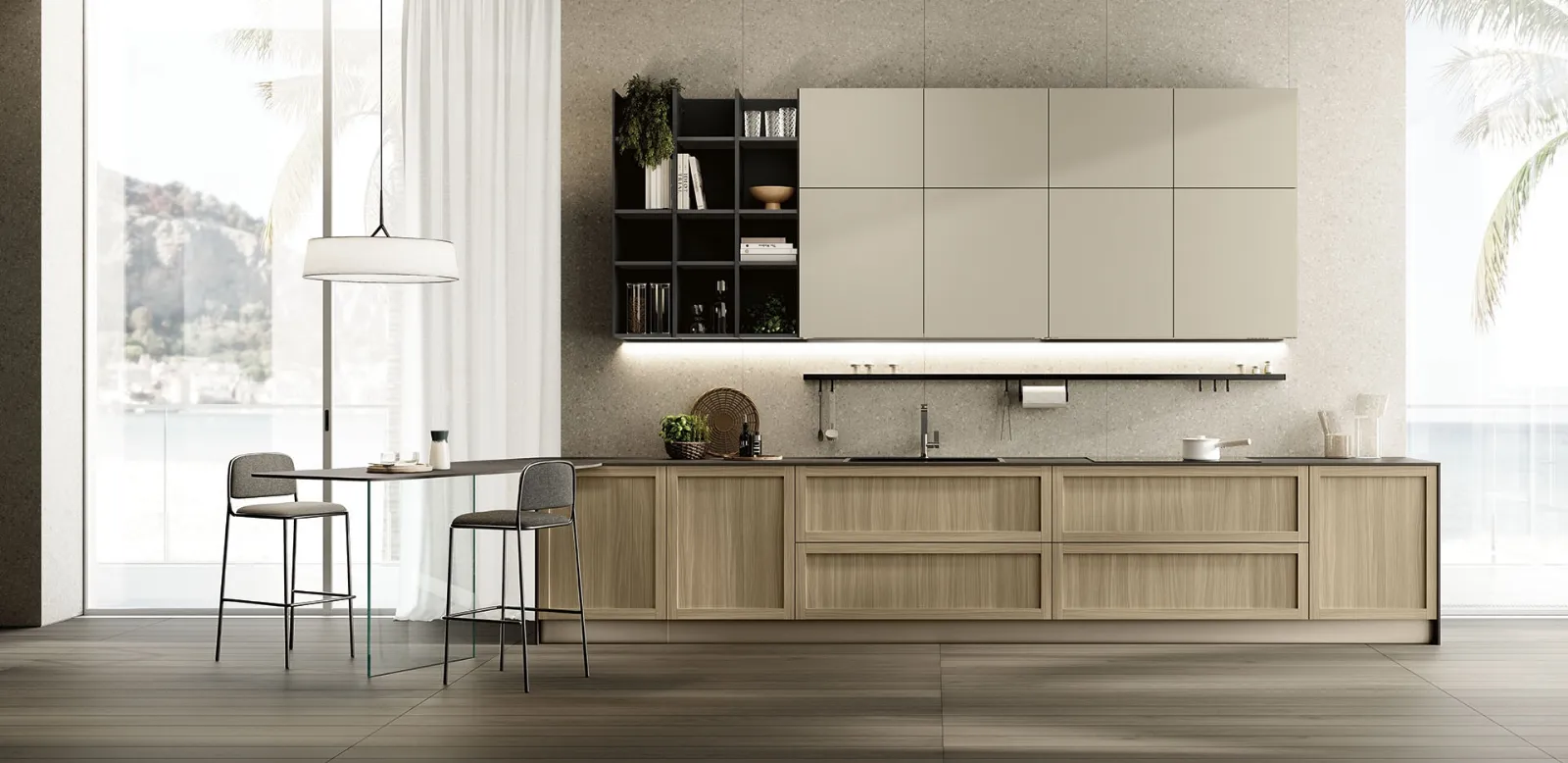 Clicca e scopri un mondo di Cucine Moderne con penisola: la cucina Penta 12 Colombini Casa Artec in melaminico ti attende!
