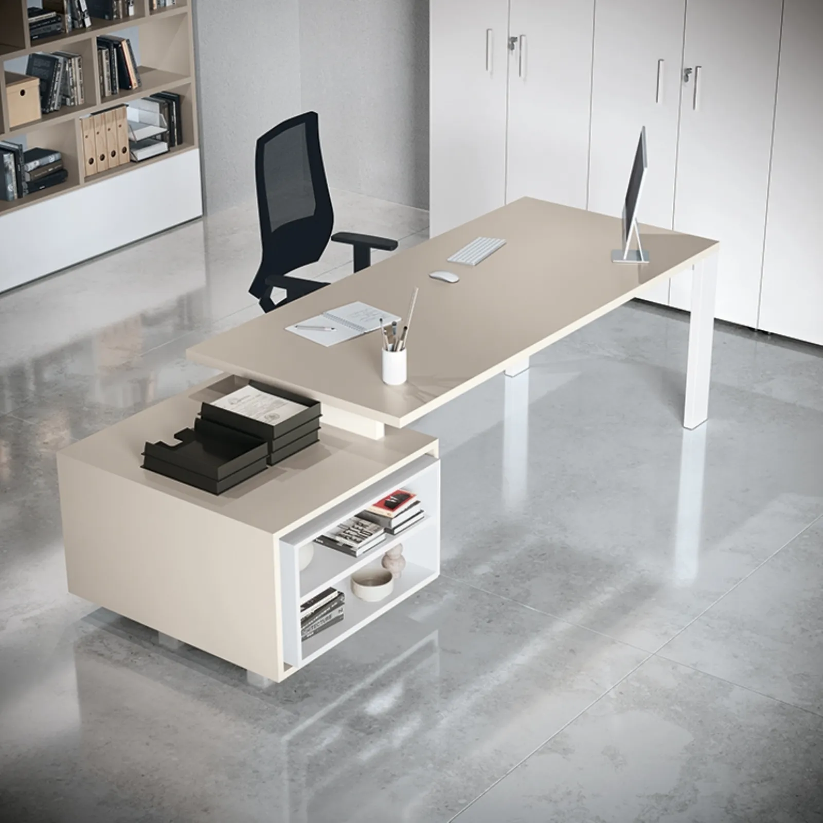 Cerchi Arredo Ufficio dei migliori brand? Scopri le differenti soluzioni di scrivanie direzionali in melaminico, come il modello Go Steel Melaminico di Colombini Office.