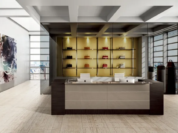 Vuoi allestire gli spazi di lavoro? Ecco qui varie proposte di banconi reception in vetro, come il modello Reception GET IN 02 di Colombini Office.